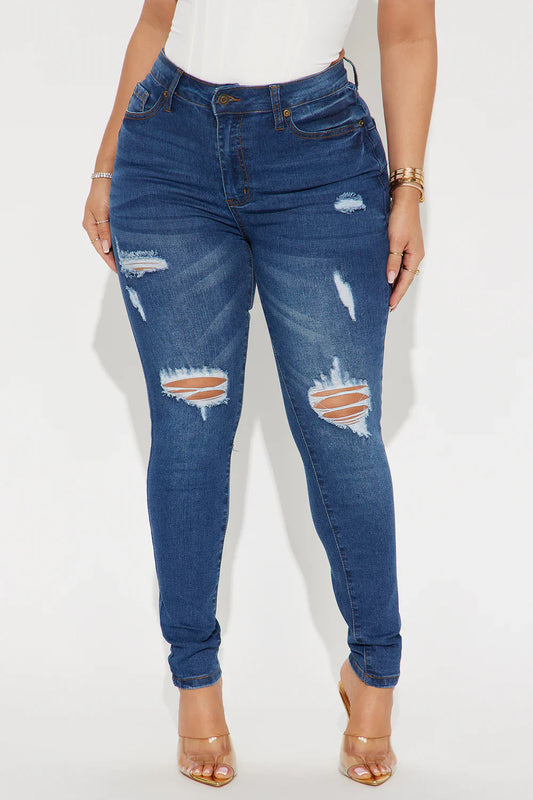 Got Spunk Destroyed High Stretch Skinny Jean - Dark Wash