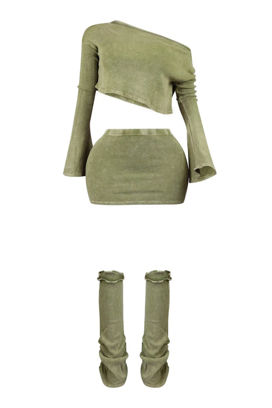 Solid Asymmetrical Top And Twist Slit Skirt Set