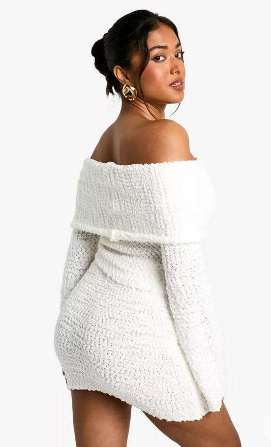 Petite Boucle Bardot Cropped Jumper & Skirt Set