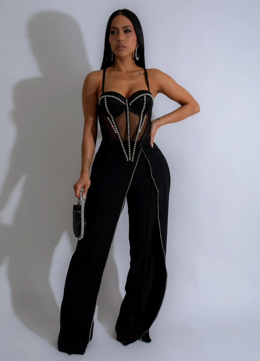 - Elevate your style with these refined trousers, showcasing a graceful draped design accented with shimmering crystal detailing. The perfect balance of glamour and sophistication for any standout occasion.