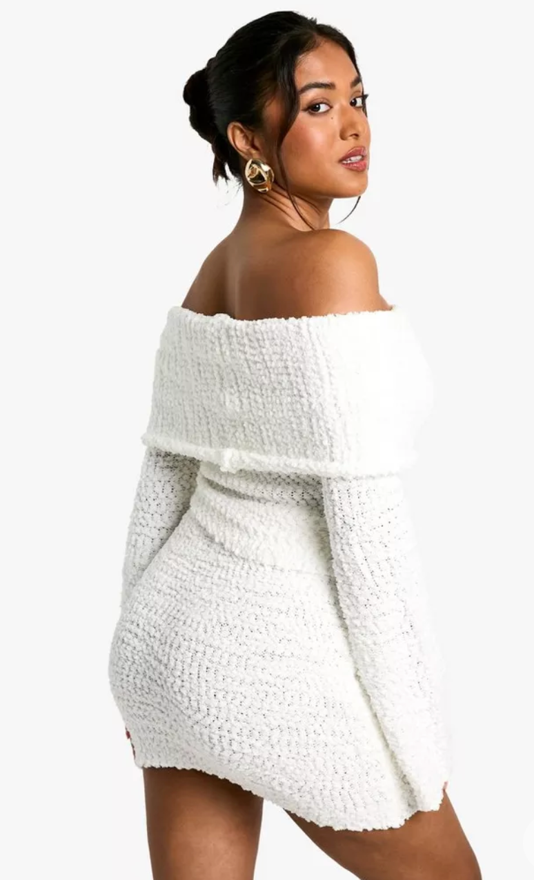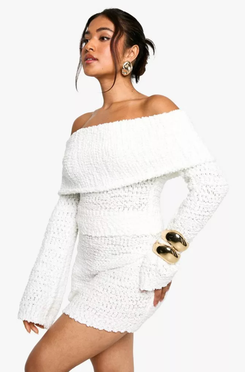 Petite Boucle Bardot Cropped Jumper & Skirt Set