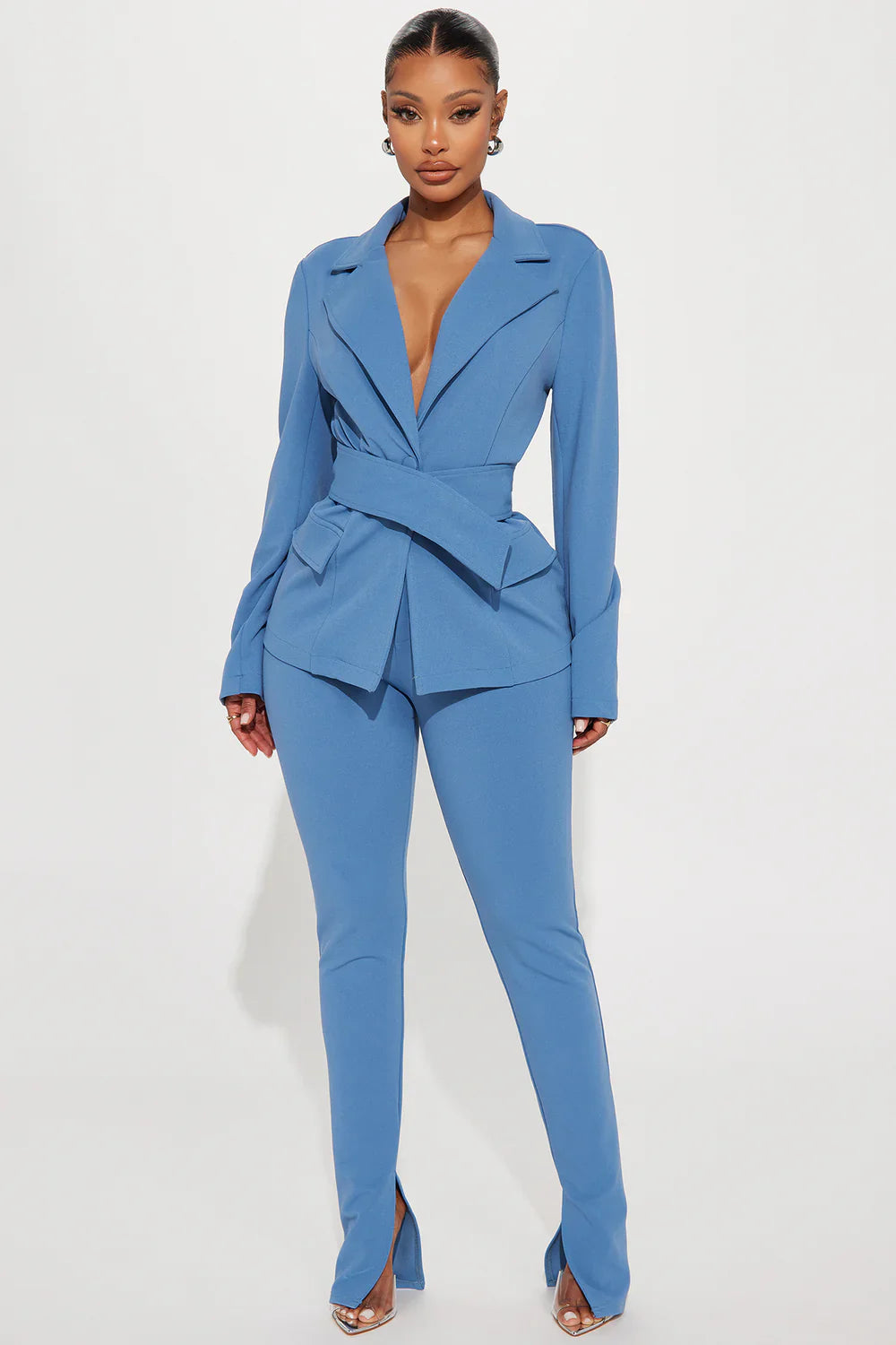 Point Of Interest Pant Set - Dusty Blue
