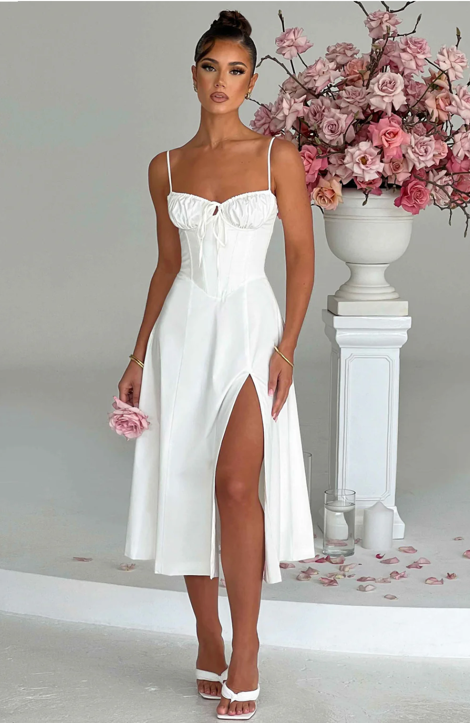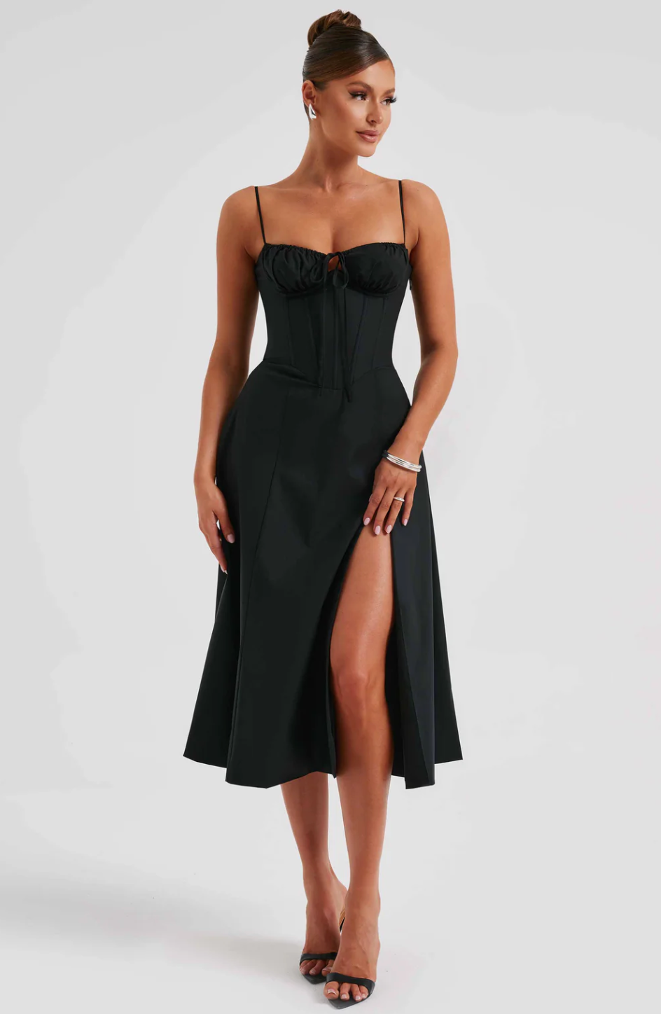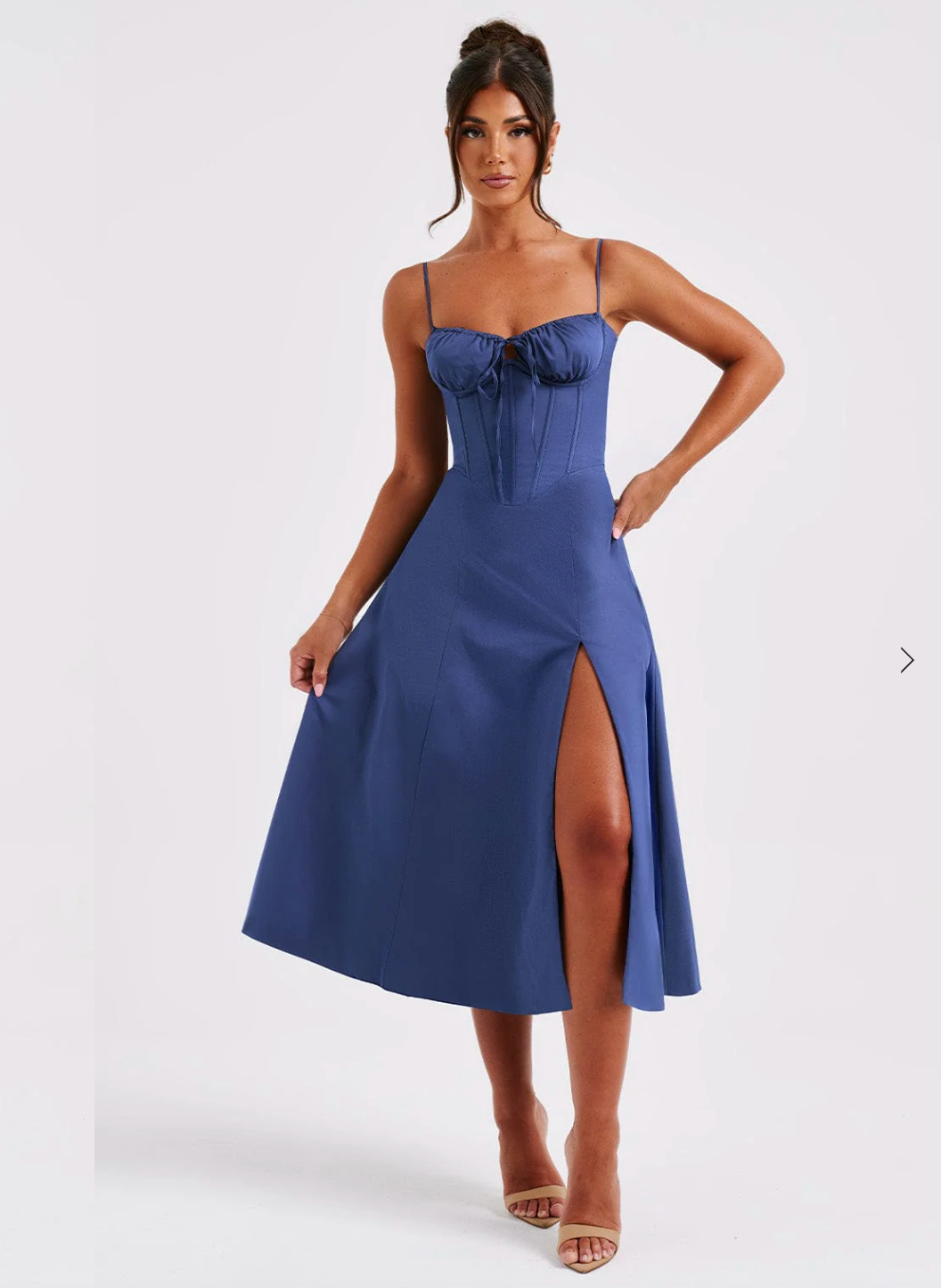 Ruched bust split thigh cami dress